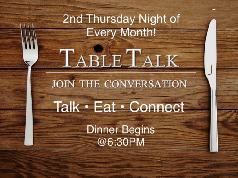 Join us the 2nd Thursday Night of Every Month for our Table Talk Dinner @6:30PM! Dinner is on us! Bring a Friend, Bring the Family for a Fun night of Connecting and Gods Word! Life is Better Together!